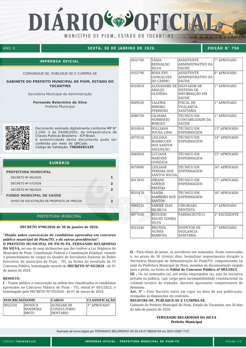 Diário Oficial Últimas Edições